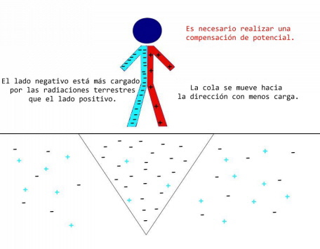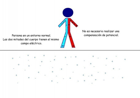 En esta imagen se puede ver cómo es el campo natural que nos rodea. Se puede comparar con una batería descargada: no se detecta tensión en los contactos, las cargas están equilibradas.