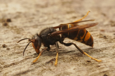 Die asiatische Hornisse ist eindeutig durch die gelben Beine zu erkennen,
