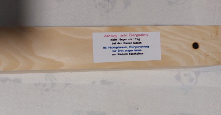Otra posibilidad es utilizar una bobina que he desarrollado (la llamo bobina de energía), que genera una zona de interferencia con doble intensidad. Esta bobina fortalece a las abejas y se necesita el doble de energía porque el entorno actual suele estar saturado de radiación técnica (teléfonos móviles, torres de electricidad, etc.).