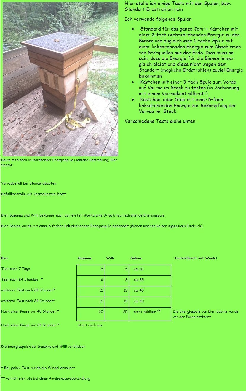 Jedoch in den Klimabeuten (Strohbeuten) sind kaum Varroa zu finden.