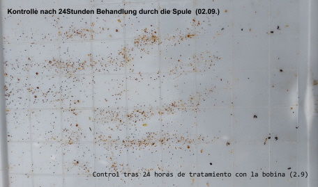 No se realizó ningún tratamiento posterior después del 2 de septiembre, es evidente que la energía de la bobina también afecta a la cría, lo que se puede observar en los controles posteriores.