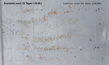 Revisión tras 16 días, se aprecia una reducción significativa de Varroa.